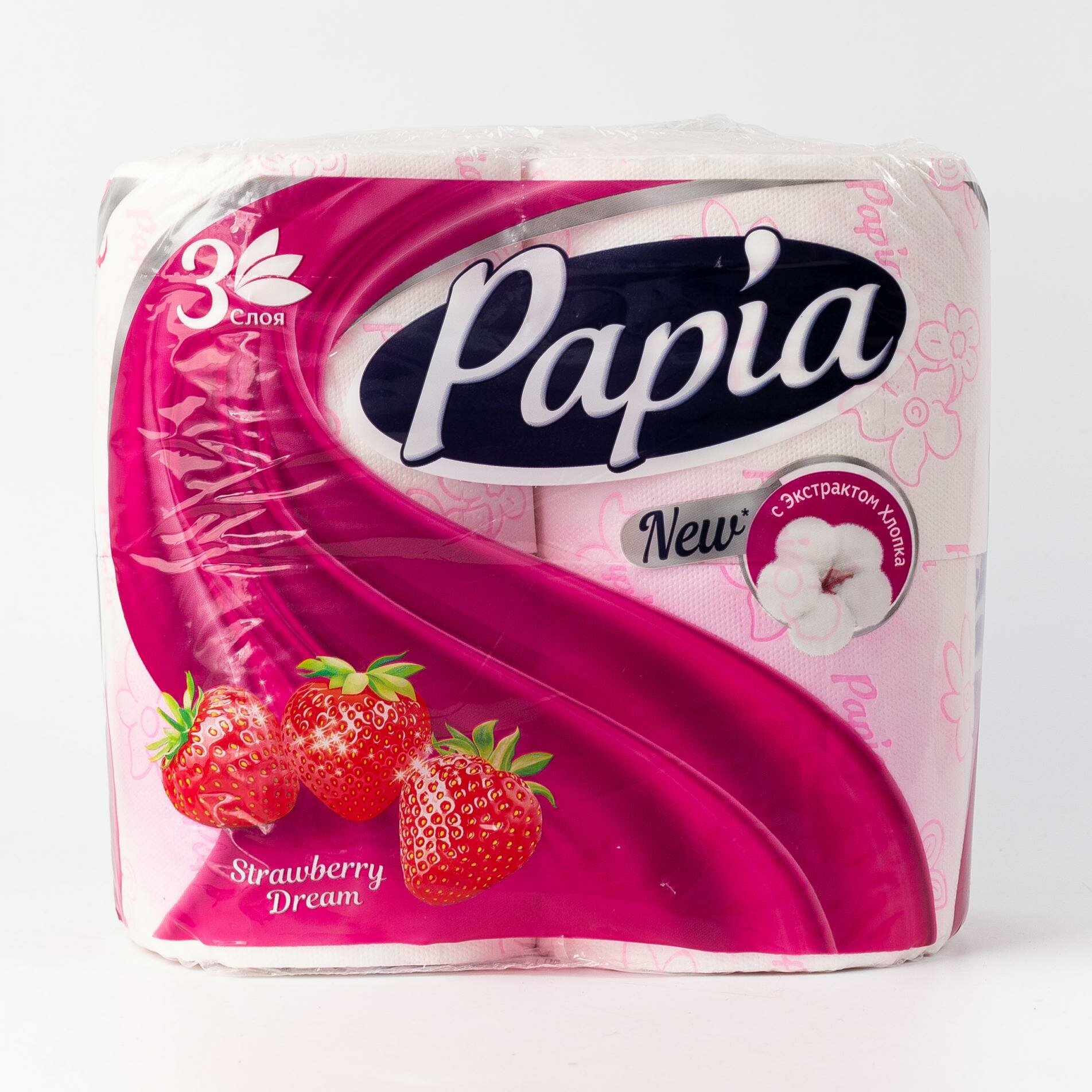Купить Туалетная бумага Papia «Клубничная мечта», 3 слоя, 4 рулона