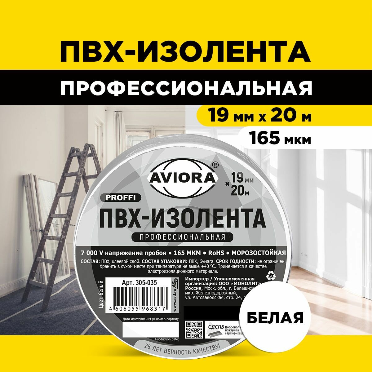Купить Изолента Aviora Proffi ПВХ 19 мм x 20 м, белый