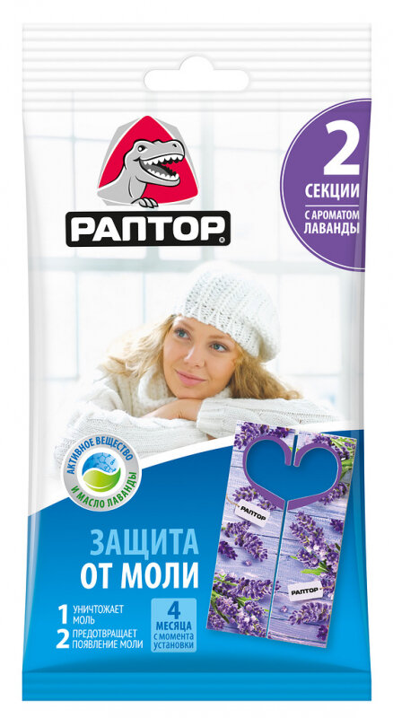 Средство от моли раптор с ароматом лаванды, 2 уп. по 2 секции / защита от моли