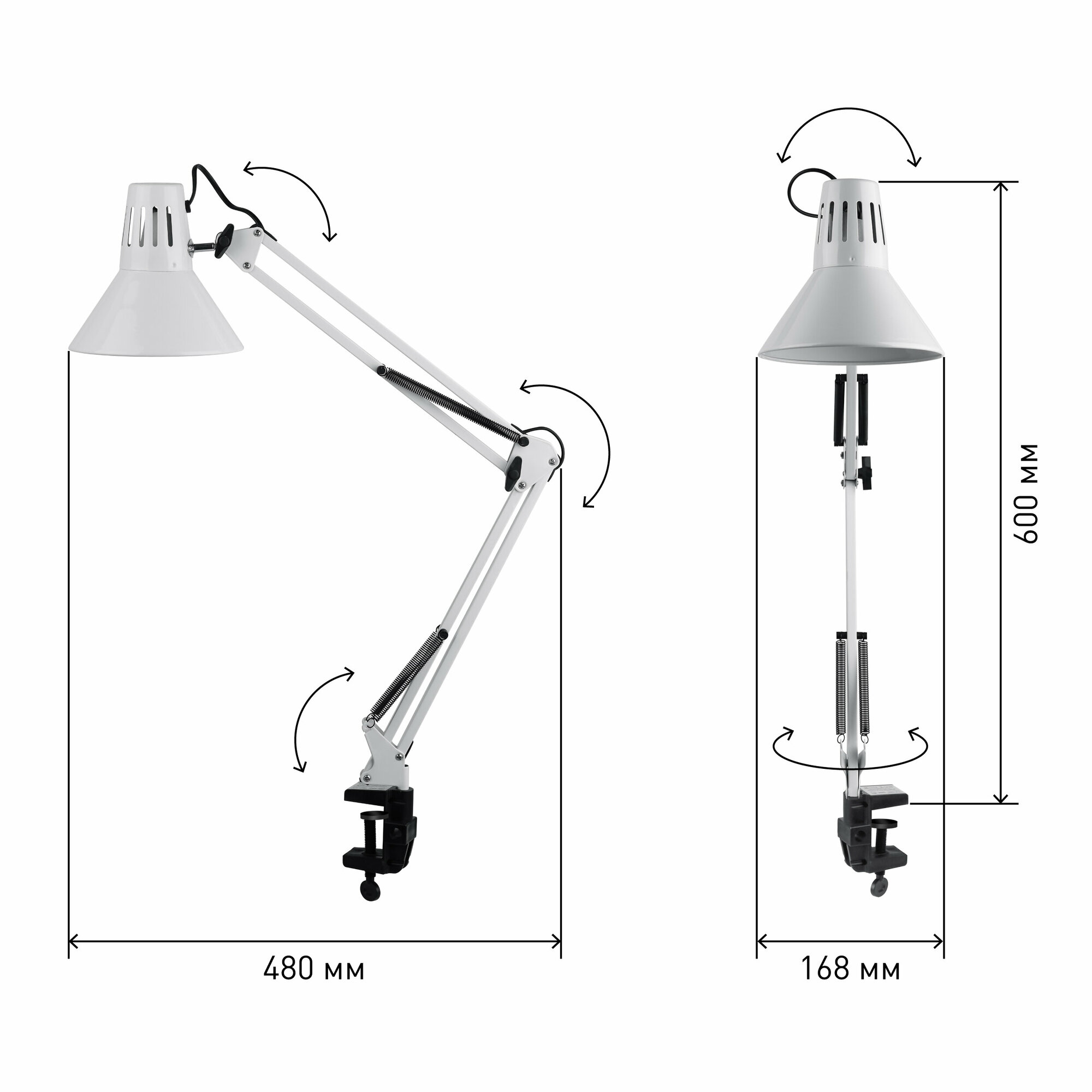 Настольная лампа для рабочего стола ЭРА N-121 Е27 40 Вт на струбцине белая