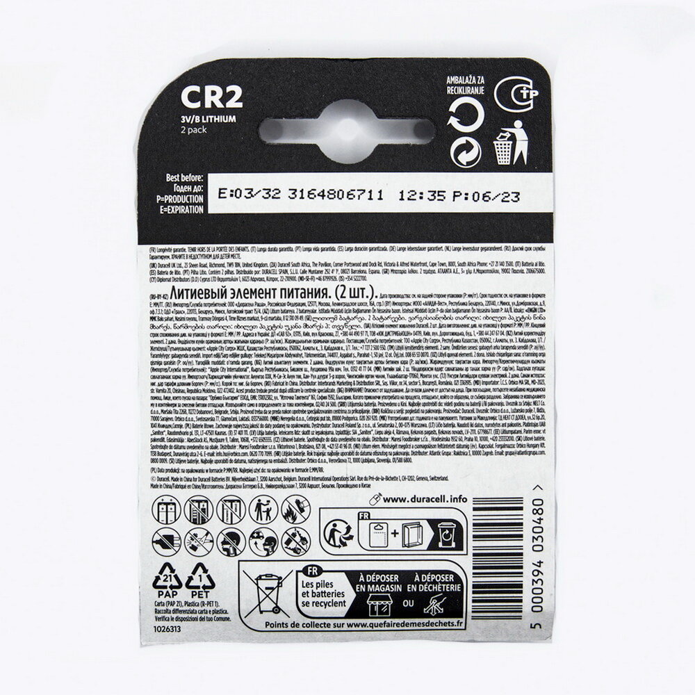 Батарейка Duracell CR2 Lithium, в упаковке: 2 шт.