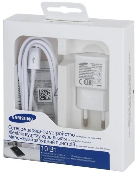 Сетевое зарядное устройство Samsung EP-TA20 + кабель microUSB, 10 Вт, белый