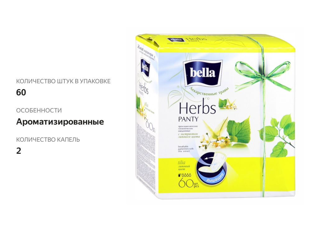 Bella Herbs Panty Soft tilia Прокладки женские гигиенические ежедневные с экстрактом липового цвета 60 шт. Впитываемость 2к