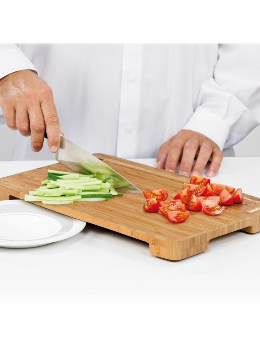 Доска разделочная деревянная для кухни набор + подставка, Набор 2 в 1