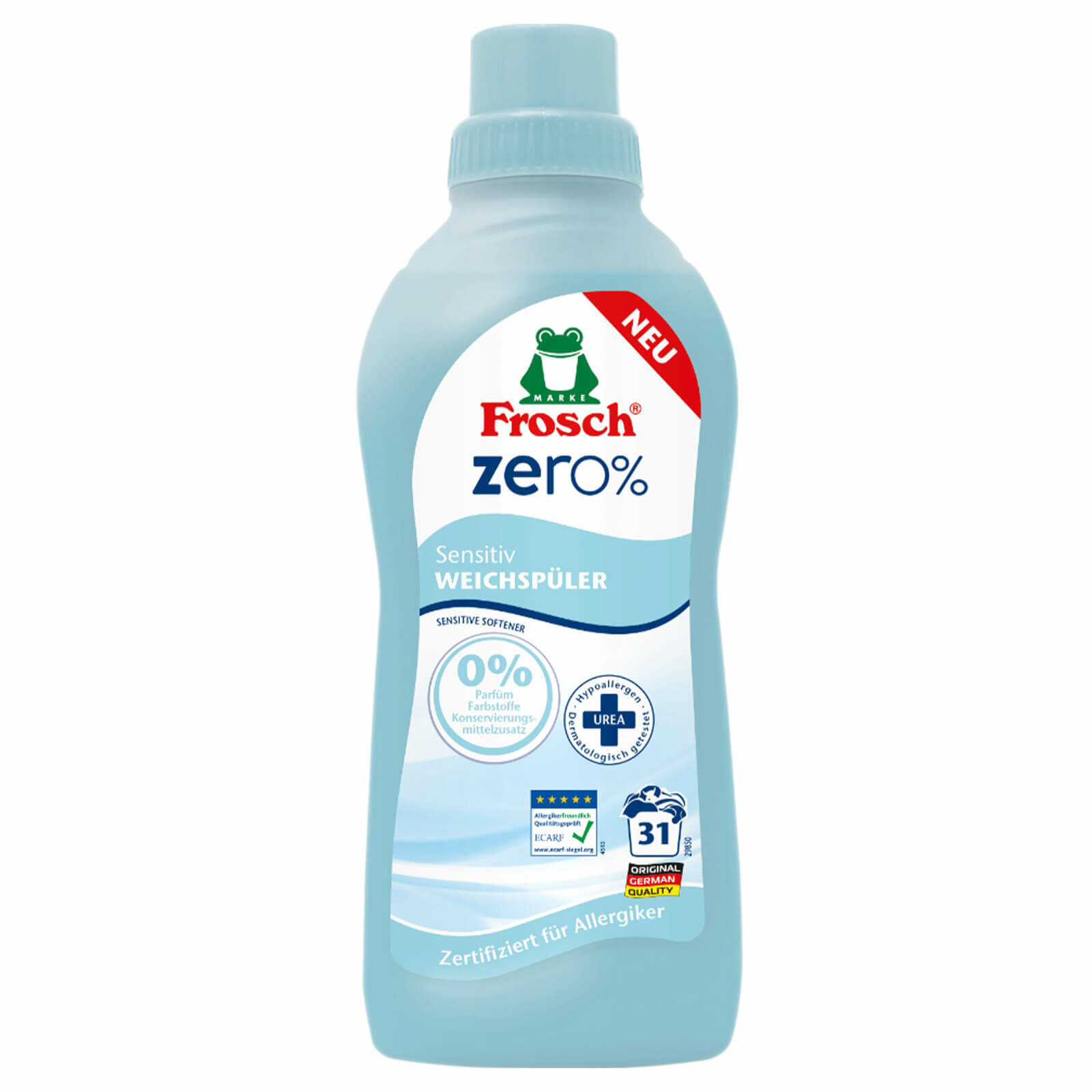 Frosch ZERO 0% Концентрированный ополаскиватель для белья Сенситив, 750 мл, Frosch