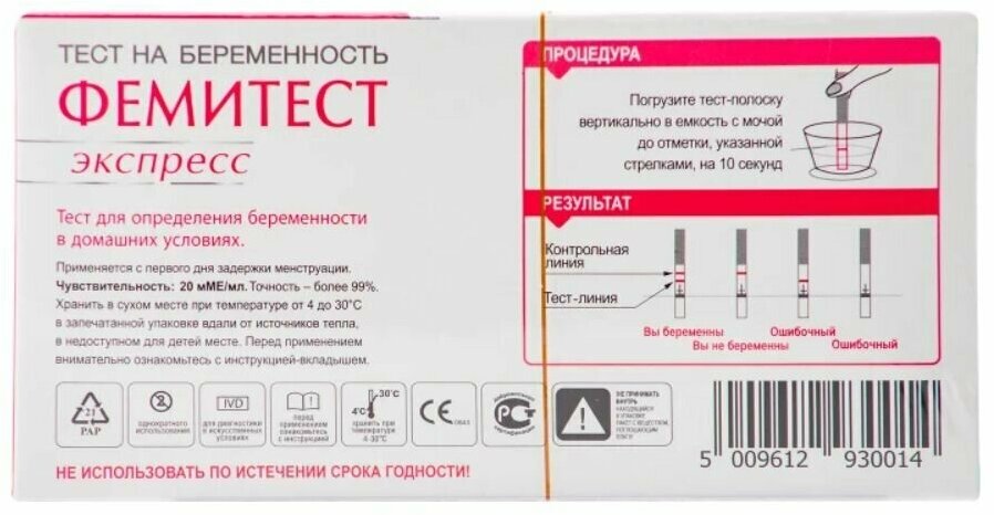 Экспресс тест фемитест для определения беременности №1