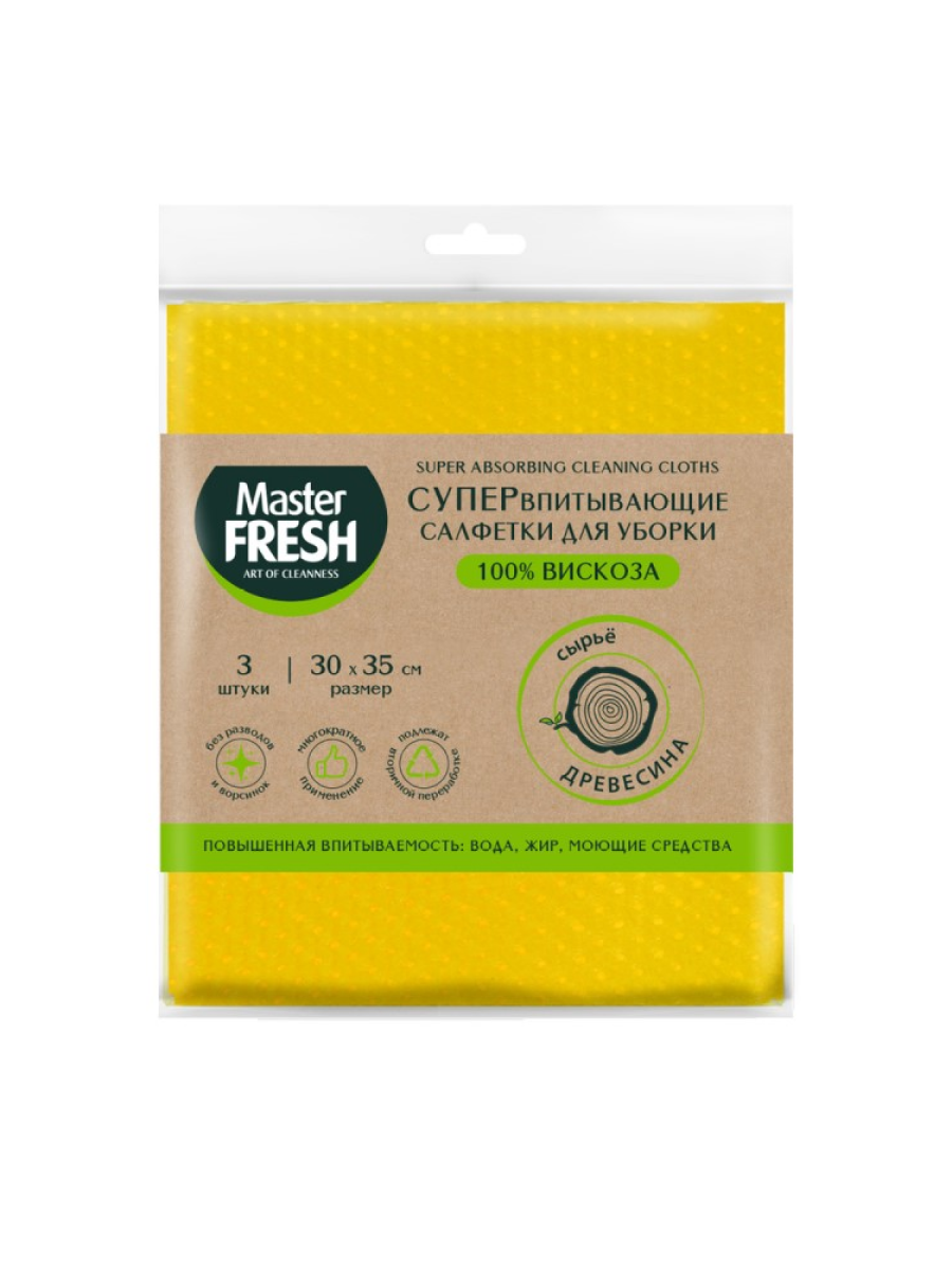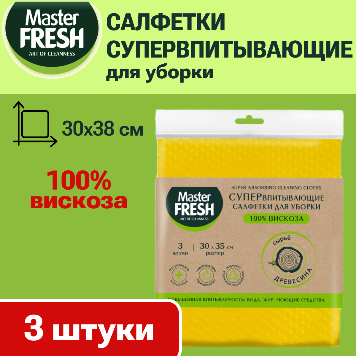 Салфетки для уборки супер-впитывающие, Master FRESH, 100% вискоза, 30х35 см, 3 шт