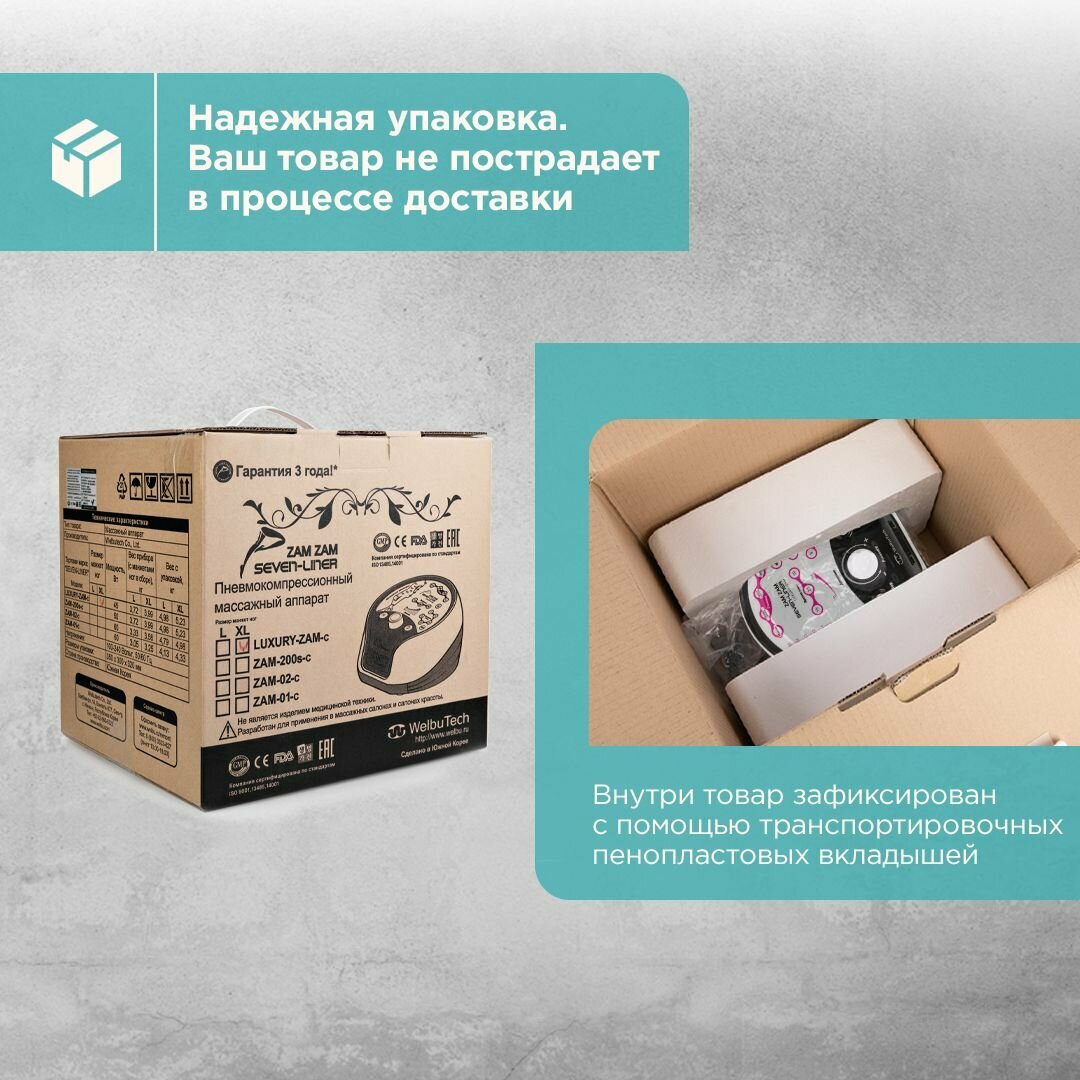 WelbuTech Seven Liner Zam Luxury Аппарат для лимфодренажа, прессотерапии, массажа (стандартный комплект), размер L (новый тип стопы)