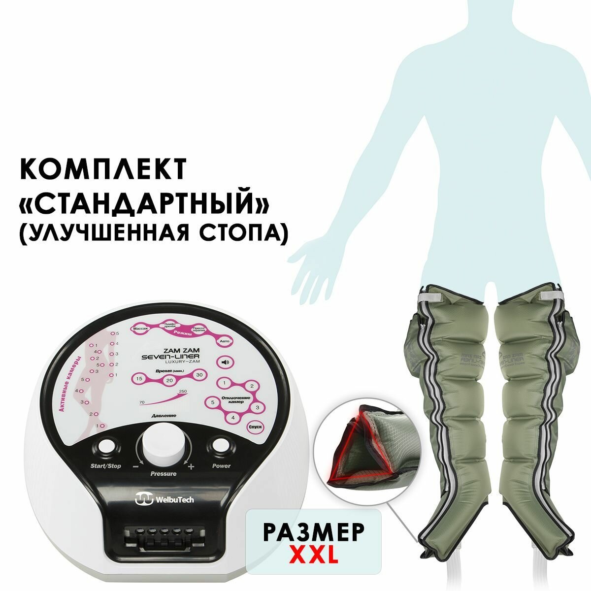 WelbuTech Seven Liner Zam Luxury, Аппарат для лимфодренажа, прессотерапии, массажа (стандартный комплект), размер XL (новый тип стопы)