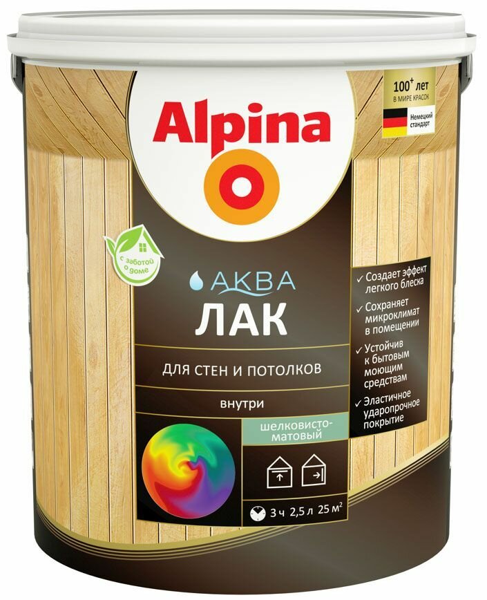 Альпина Аква лак акриловый для паркета и полов шелковисто-матовый (2,5л) / ALPINA Aqua лак акриловый для паркета и полов на водной основе шелковисто-м
