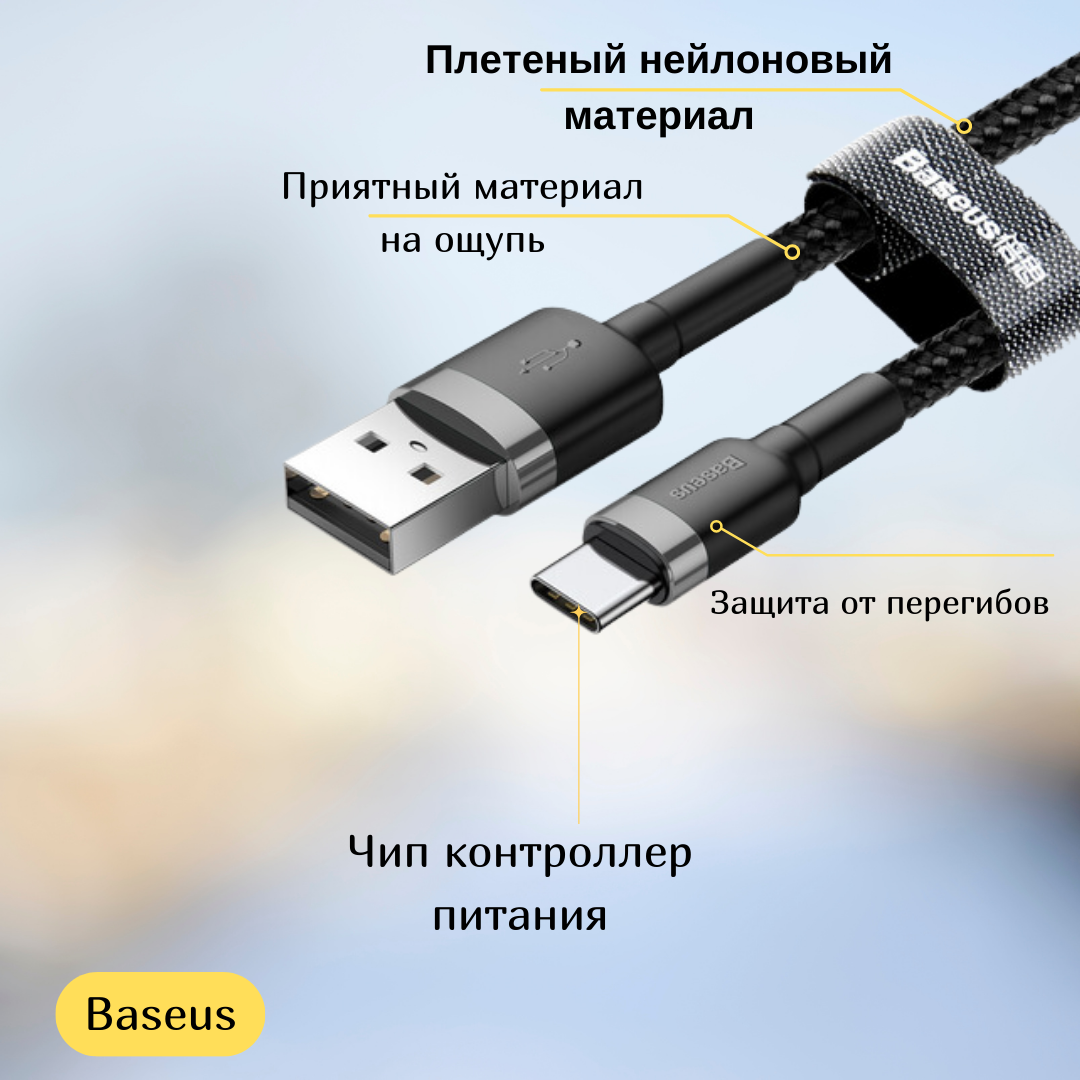 СохранитьКабель Baseus cafule USB-A/USB-C 3A (0.5 м), черный/серый 30W интересное: