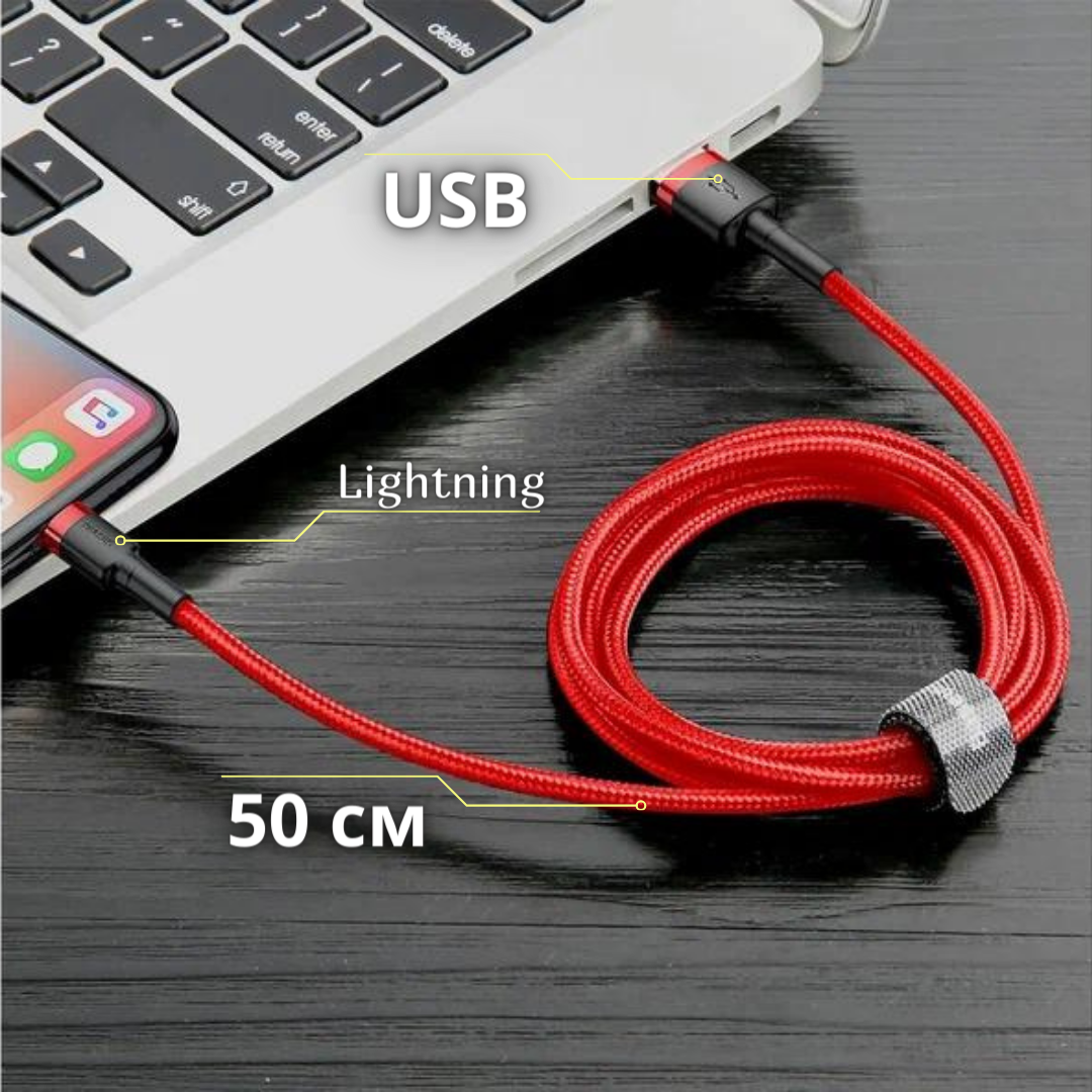 Кабель для айфона 0.5 метра Baseus USB - Lightning провод для быстрой зарядки телефона лайтинг шнур для IPhone