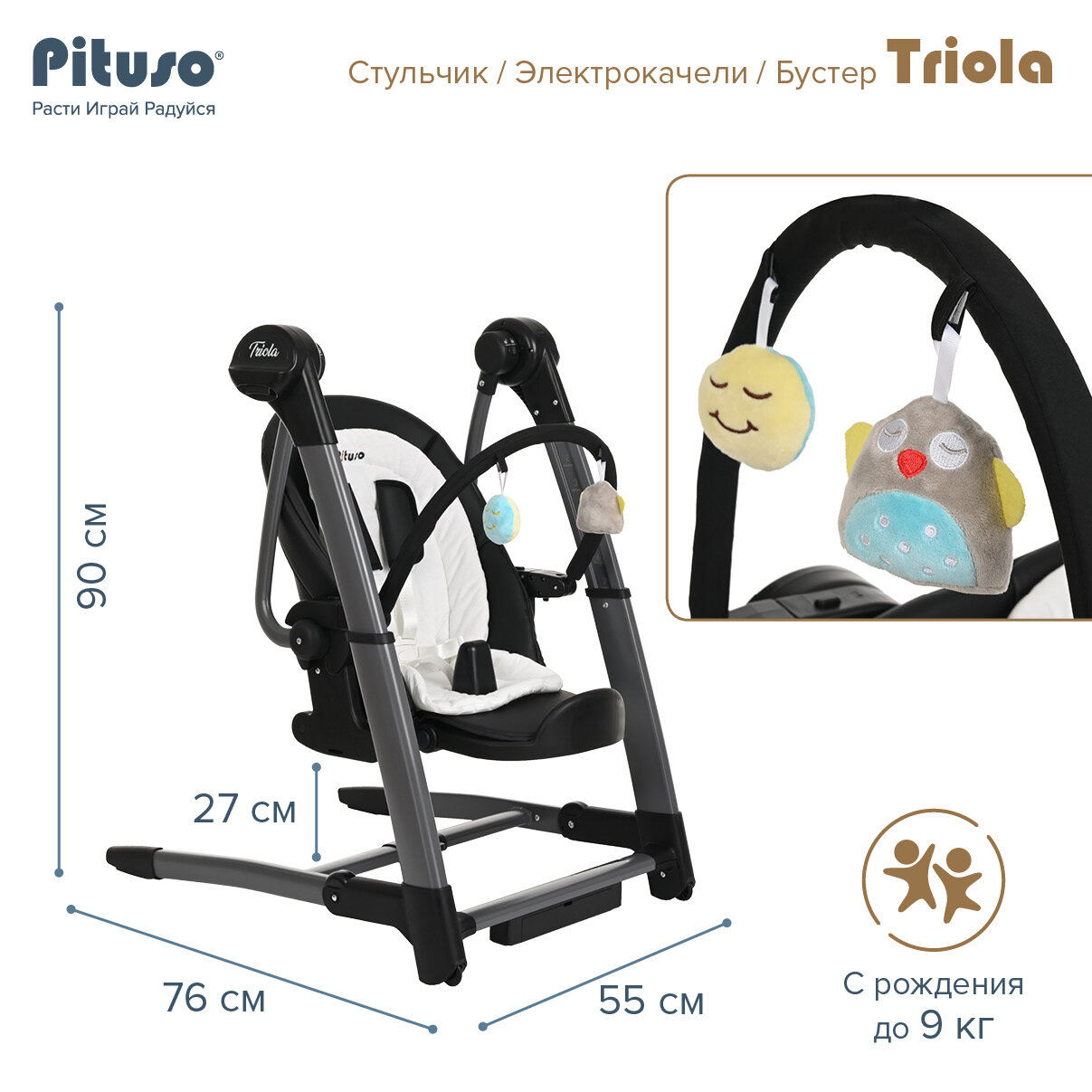 Стульчик для кормления Pituso Triola 3 в 1 темно -серый, электрокачели