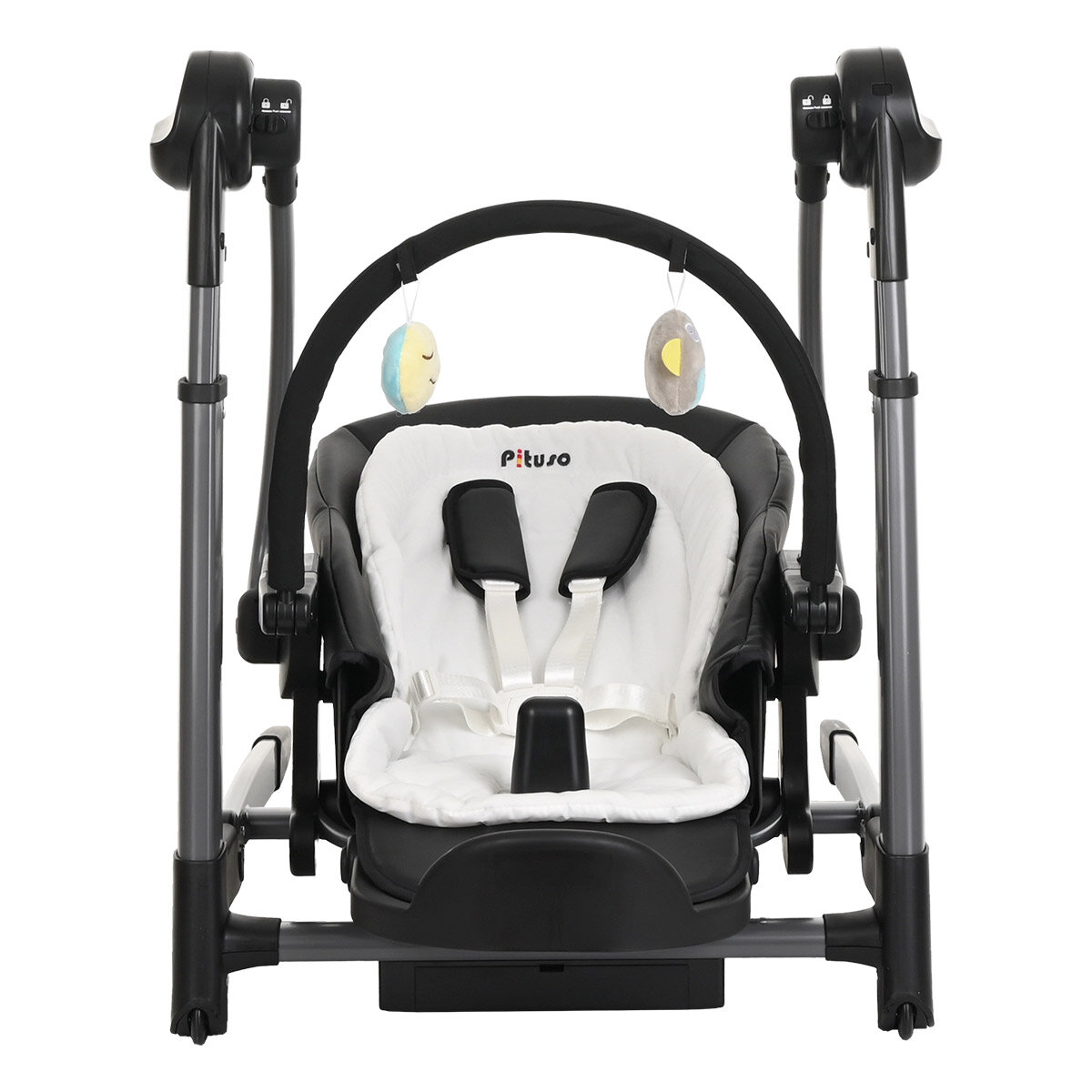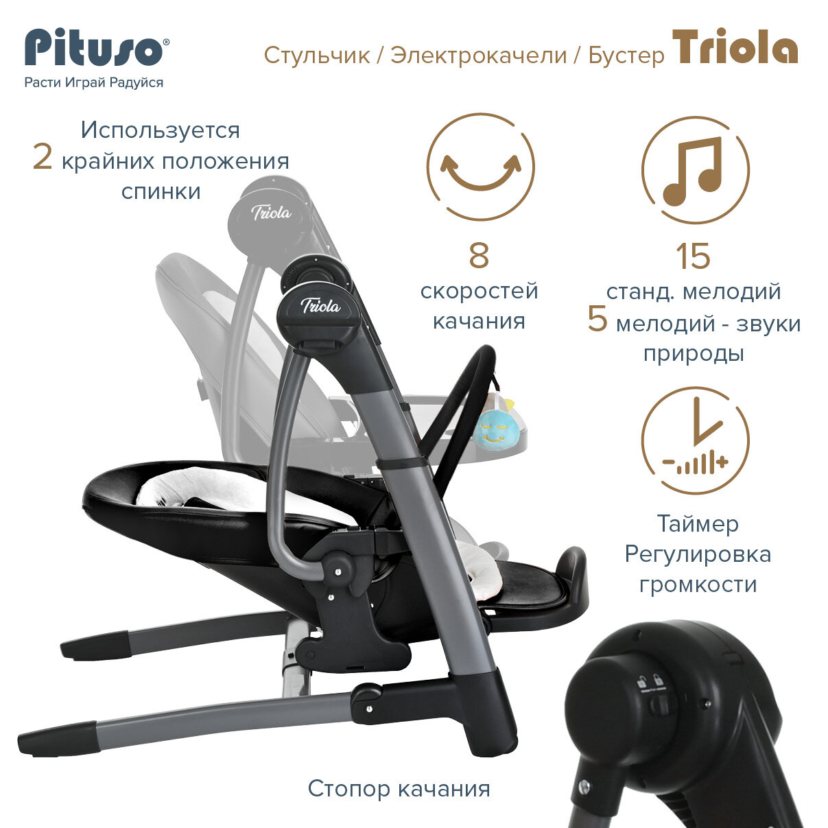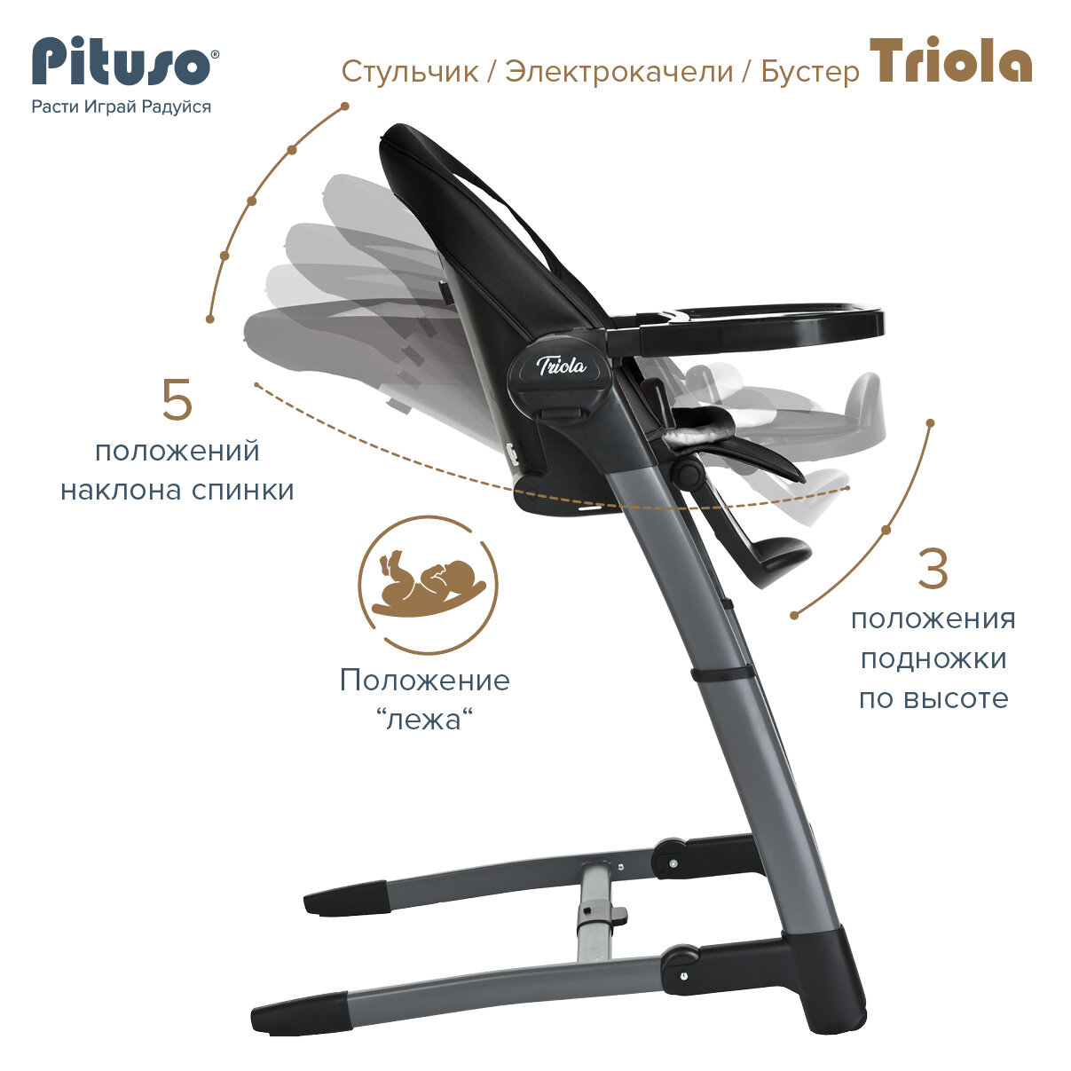 Стульчик для кормления Pituso Triola 3 в 1 ( качели, стульчик, бустер) бежевый/чёрный
