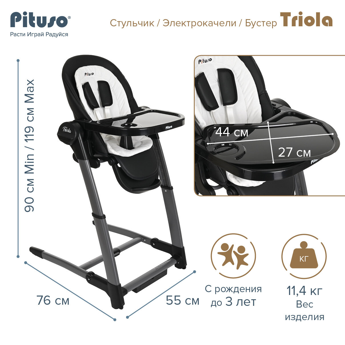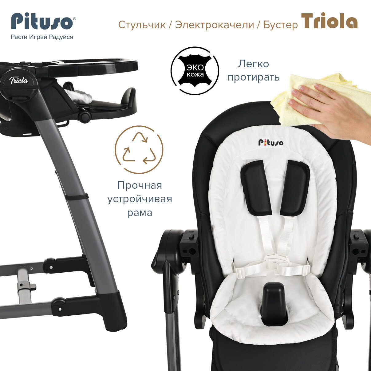 Купить Стульчик для кормления Pituso Triola 3 в 1 белый/чёрный