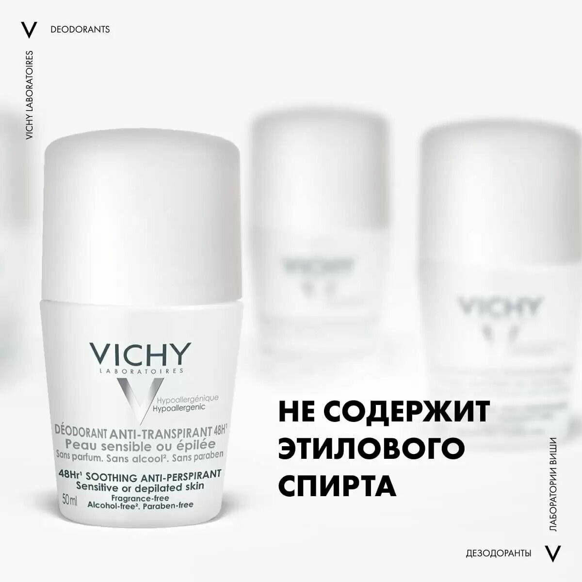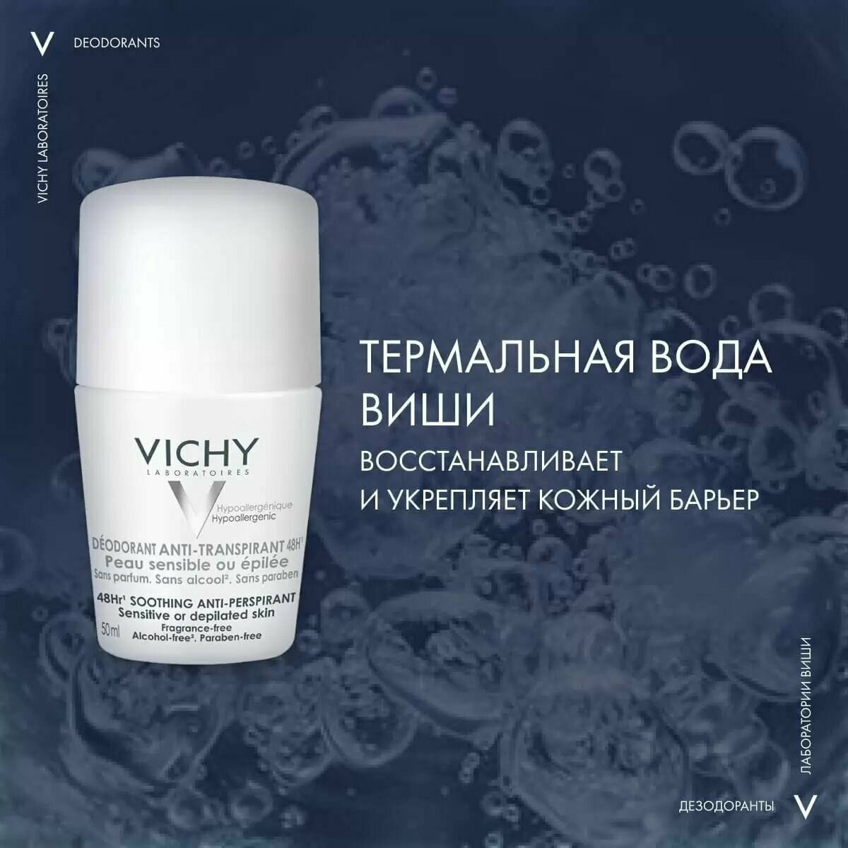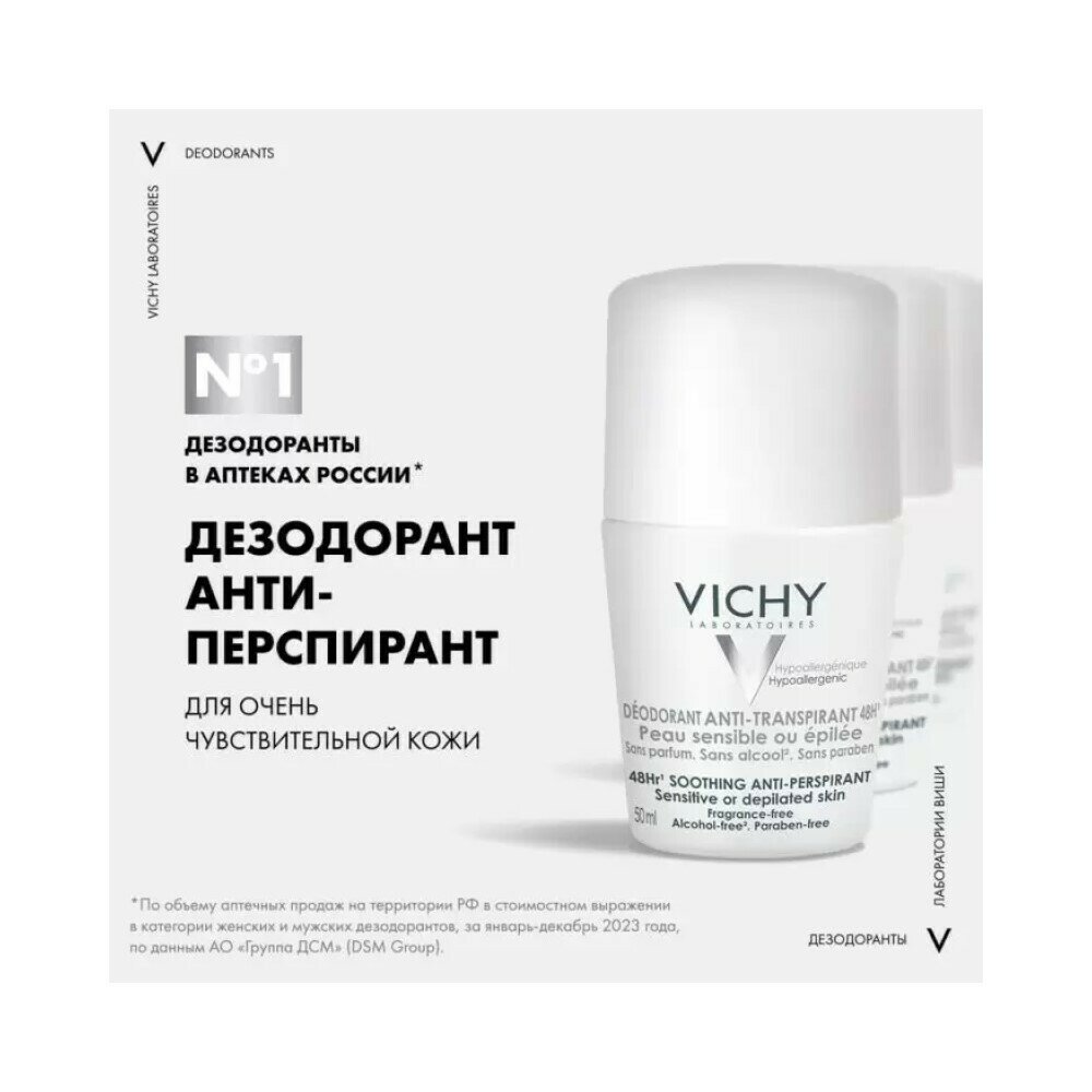 Vichy дезодорант шариковый 48 ч для чувствительной кожи, 50мл