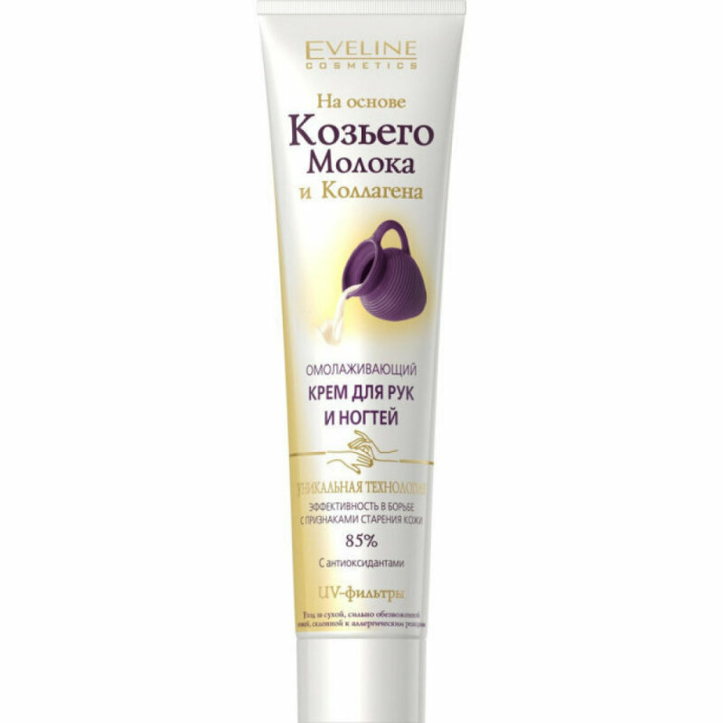 Крем для рук и ногтей EVELINE, омолаживающий, на основе козьего молока и коллагена, 125мл