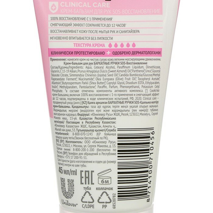 Крем-бальзам для рук Бархатные ручки SOS-восстановление, 45 мл Бархатные ручки 3298760 .
