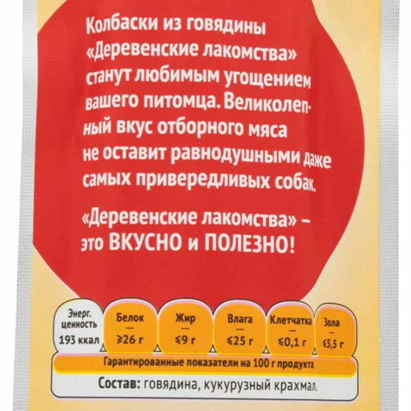 Деревенские лакомства "Мясные колбаски из говядины" для собак пакет, 45 гр