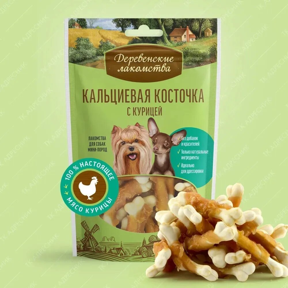 Лакомство деревенские лакомства для мини-пород Кальциевая косточка с курицей 55 г
