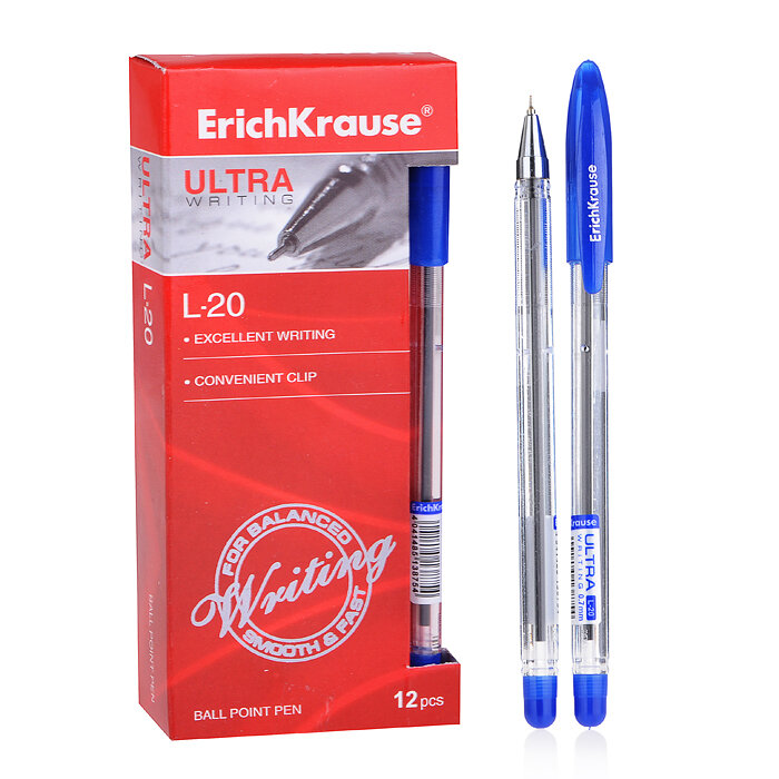 Ручка шариковая Erich Krause ULTRA L-20, 0,7мм, синяя (12 шт. в упаковке)