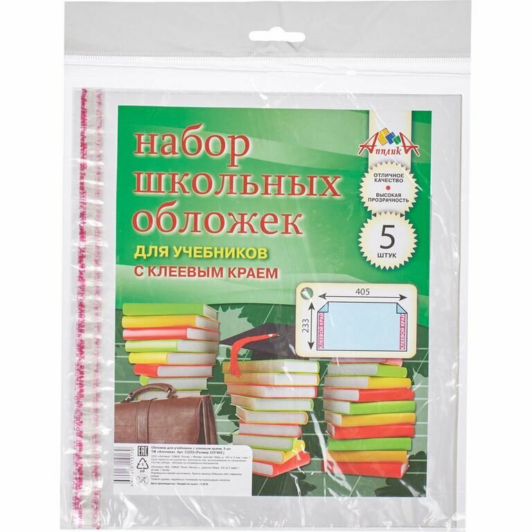 Купить АппликА Набор обложек для учебников (с клеевым краем) 110 мкм ( 233х405 мм) 5 шт. прозрачные С2253
