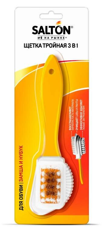 СохранитьЩетка для обуви SALTON Тройная для изделий из замши и нубука, 22 см, белый/желтый интересное: