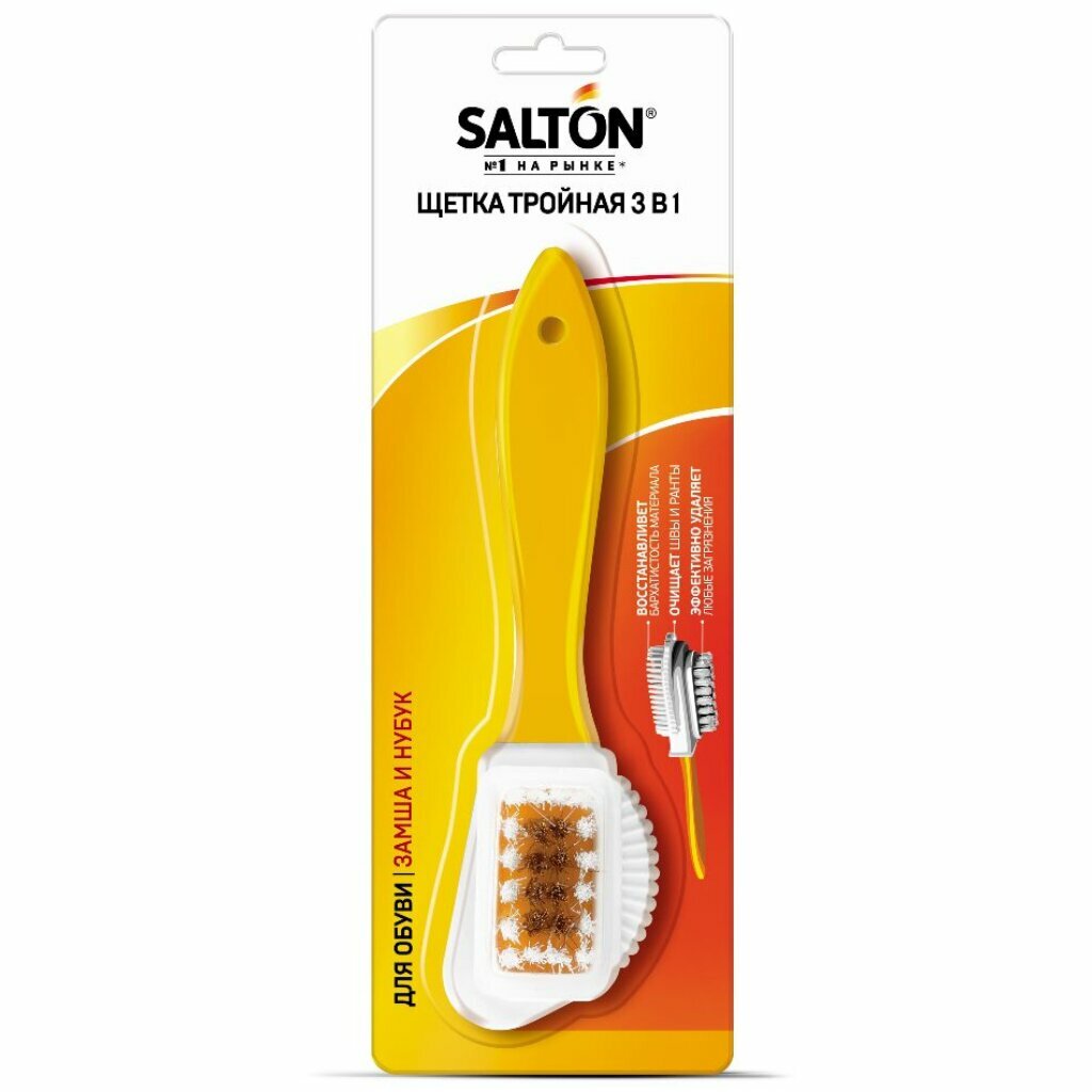 Щетка для обуви, одежды, сумок, аксессуаров, мебели из замши, велюра и нубука, Salton, тройная 3в1
