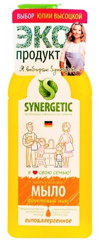 Жидкое мыло SYNERGETIC "Фруктовый микс" с эффектом увлажнения, гипоаллергенное, 0,5л