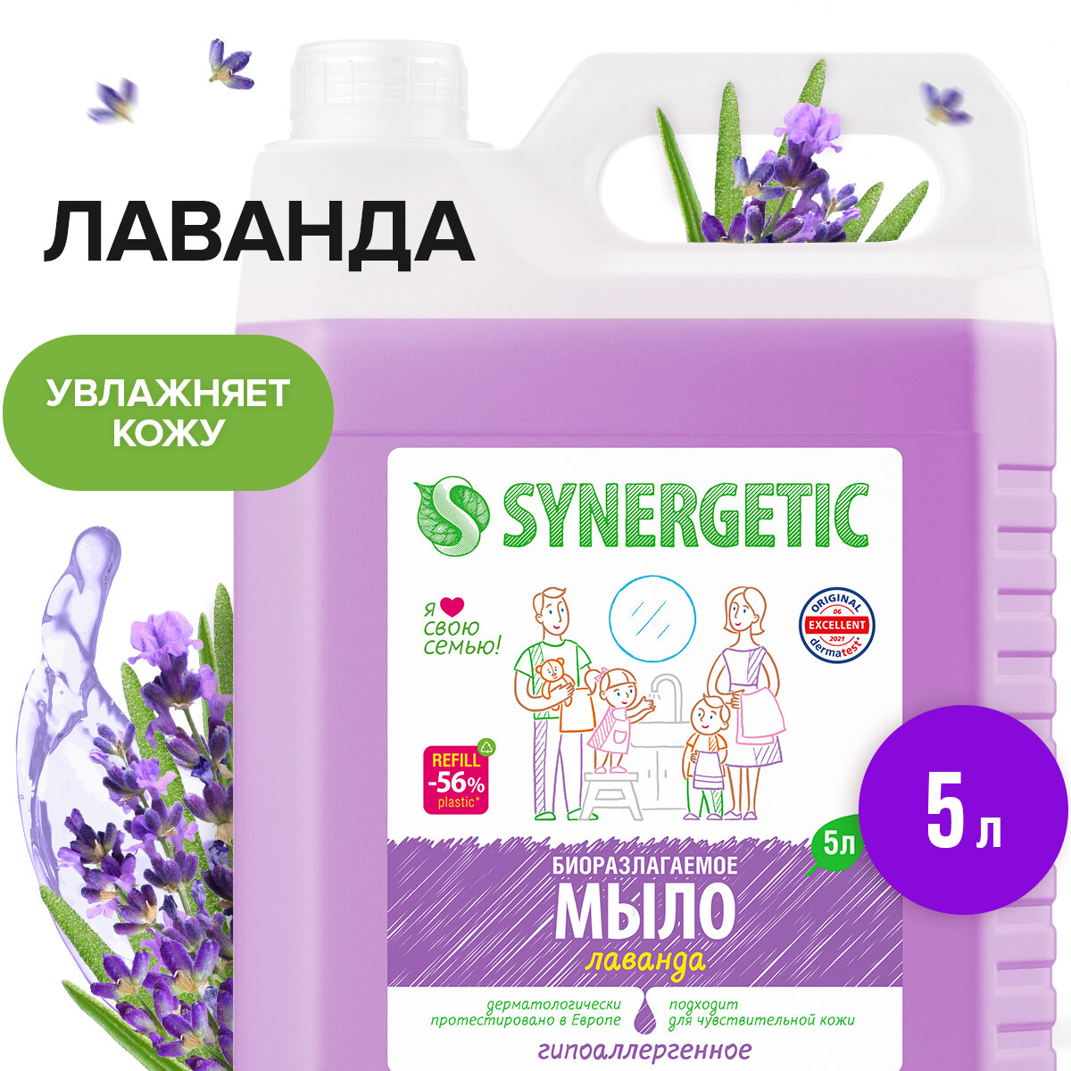 Жидкое мыло SYNERGETIC "Лаванда" с эффектом увлажнения, гипоаллергенное, 5л