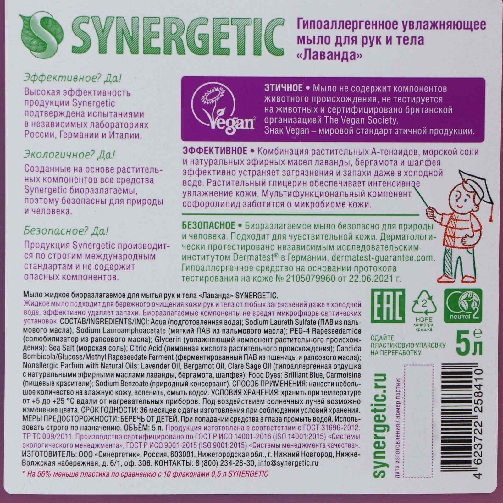Synergetic Мыло жидкое, Лаванда, 5л 4623722258410 .