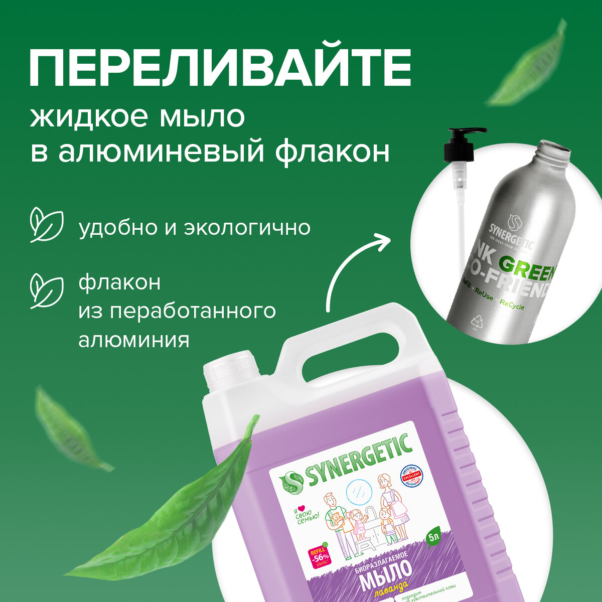 Набор биоразлагаемого жидкого мыла "SYNERGETIC Лаванда"
