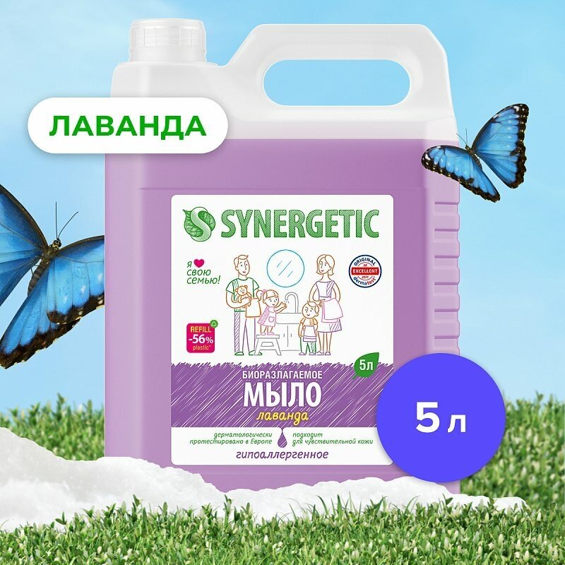 Жидкое мыло Synergetic "Лаванда", гипоаллергенное, 5 л Synergetic 3393347 .