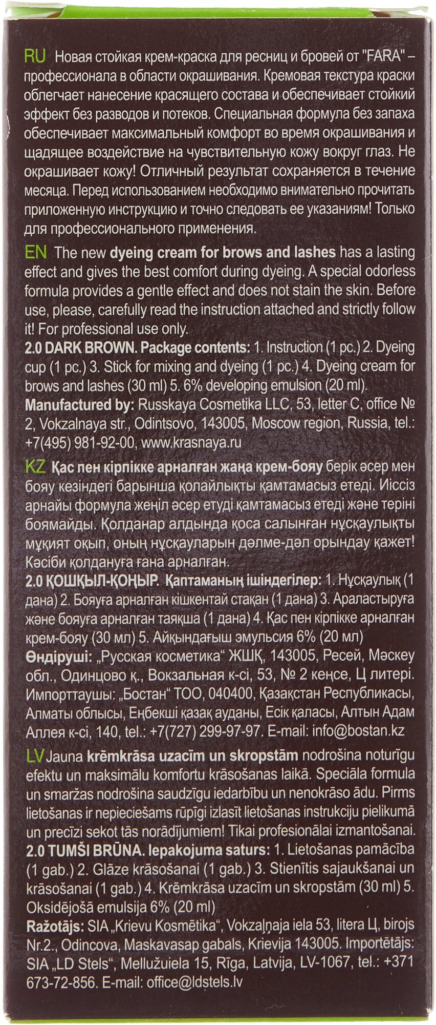 Fara,Крем-краска для бровей и ресниц, тон 2.0 темно-коричневый, 30 мл