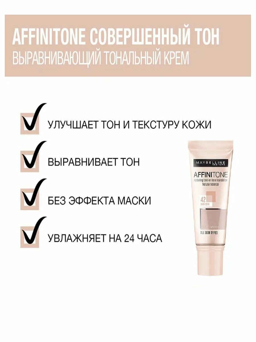 Maybelline New York Тональный крем для лица Affinitone №42 Темно-бежевый, 30 мл