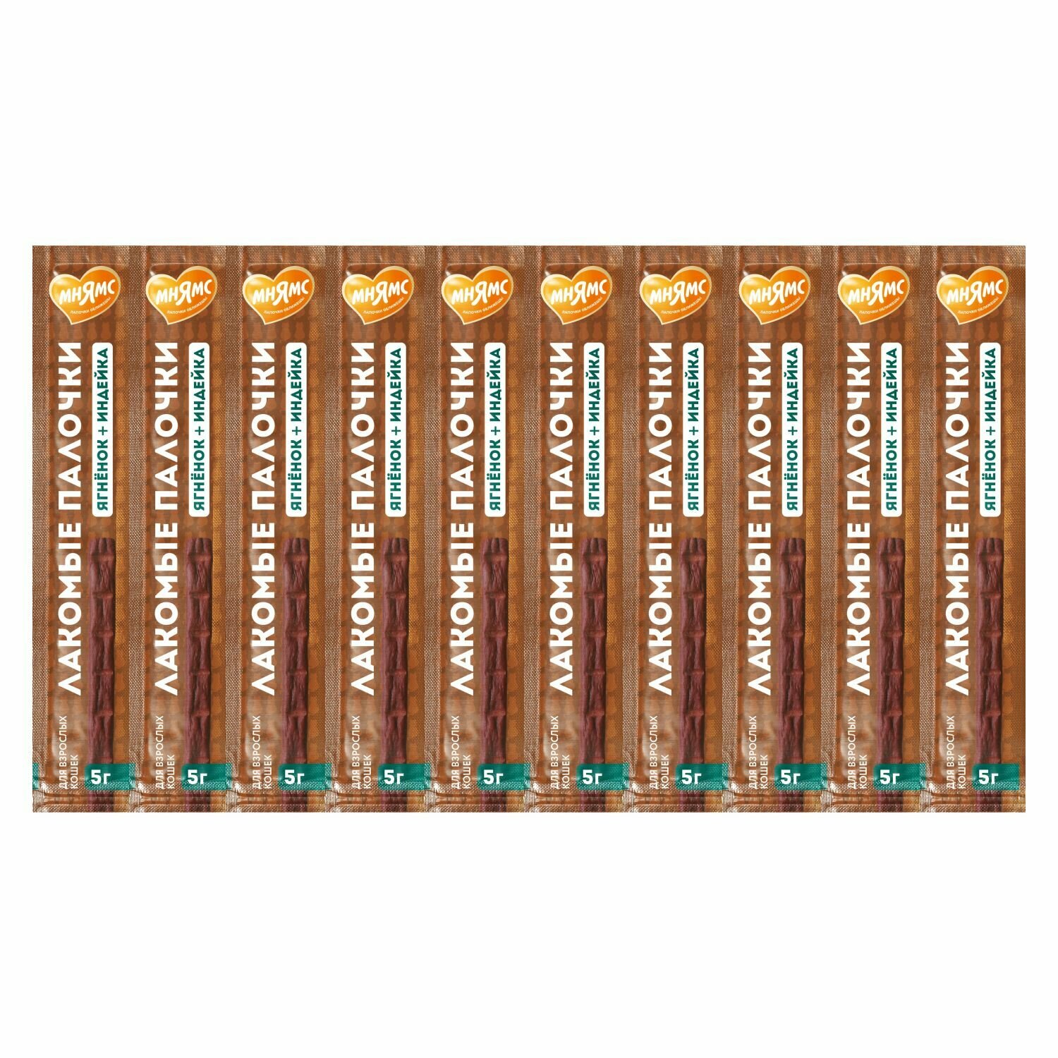 Мнямс лакомые палочки 13,5 см для кошек ягненок и индейкой 10х5 г, 1 уп