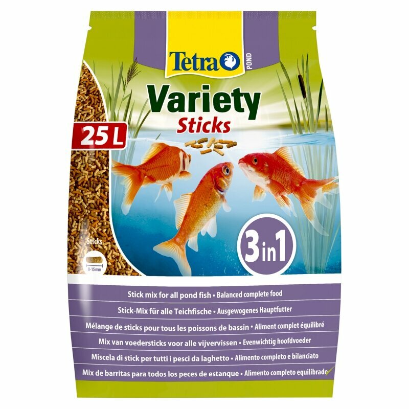 Корм Tetra Pond Variety Sticks 25 л, смесь из 3-х видов палочек для всех видов прудовых рыб