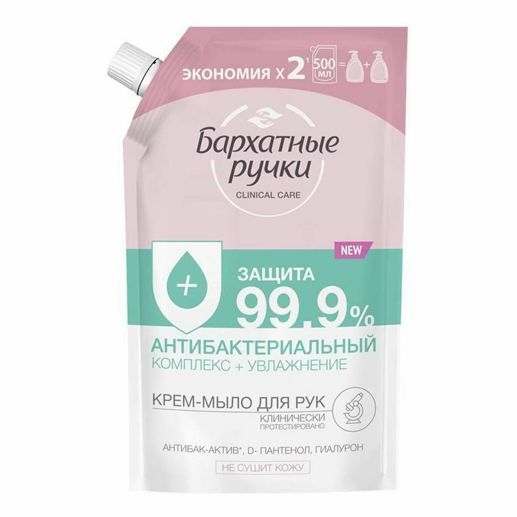 Бархатные ручки Жидкое крем-мыло, Антибактериальный комплекс, Дой-пак, 500 мл