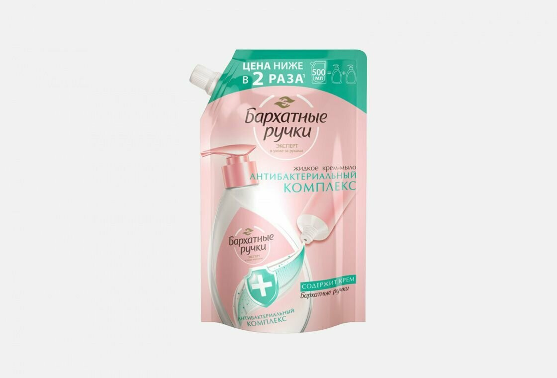 Жидкое крем-мыло бархатные ручки Антибактериальный комплекс (запасной блок), 500 мл