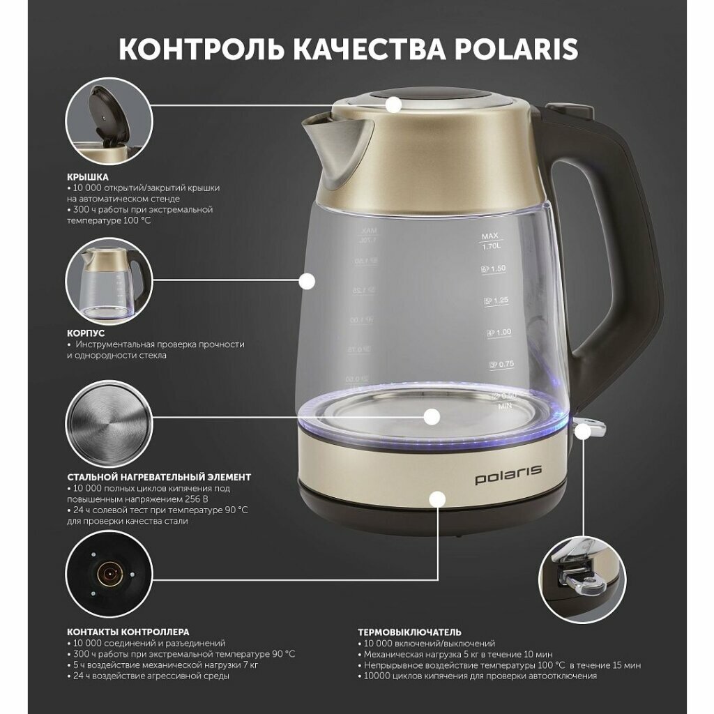 Чайник Polaris PWK1760CGL стекло, шампань 1850-2150 Вт. 1,7 л, Strix