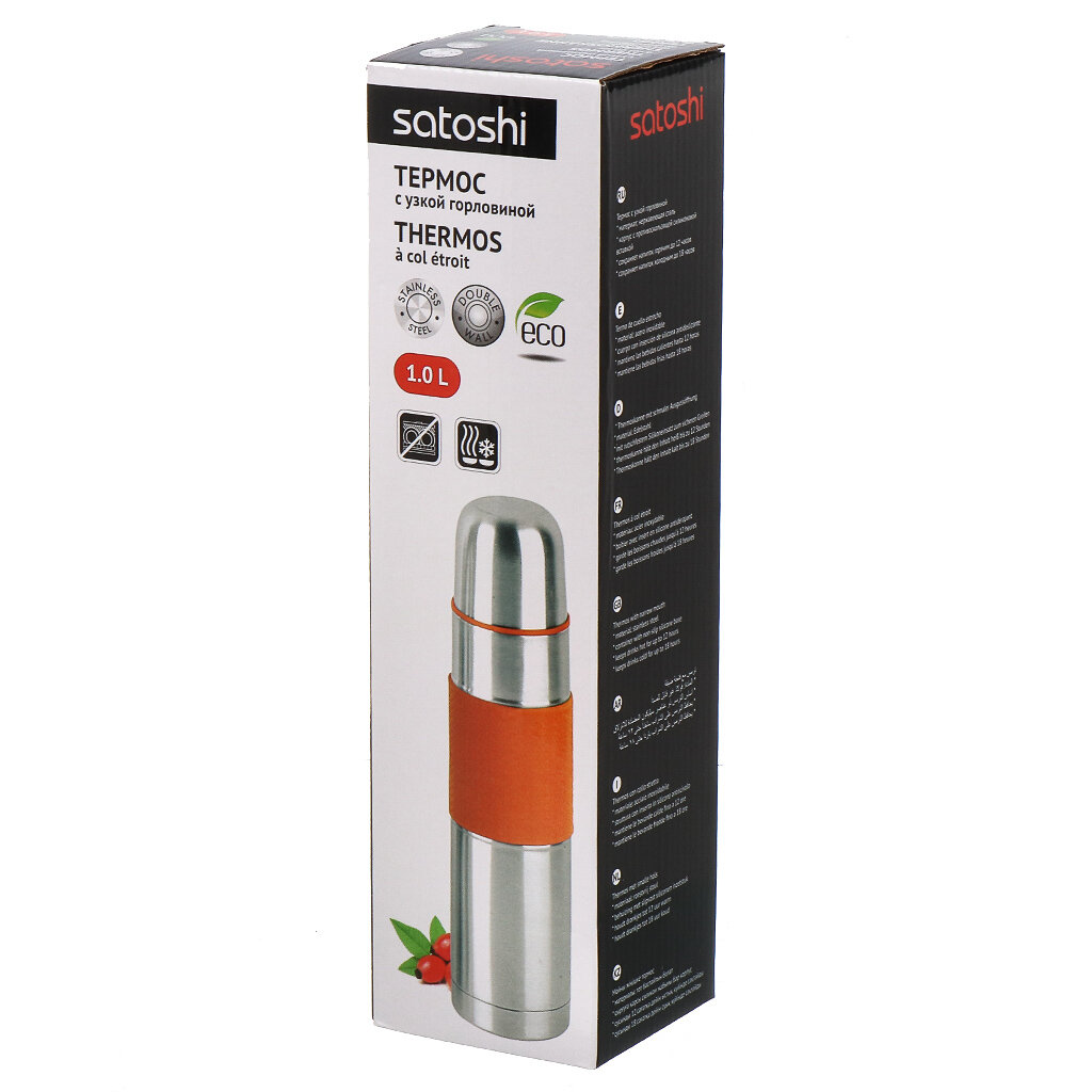 Классический термос Satoshi Kitchenware 841-635, 1 л, серебристый/оранжевый