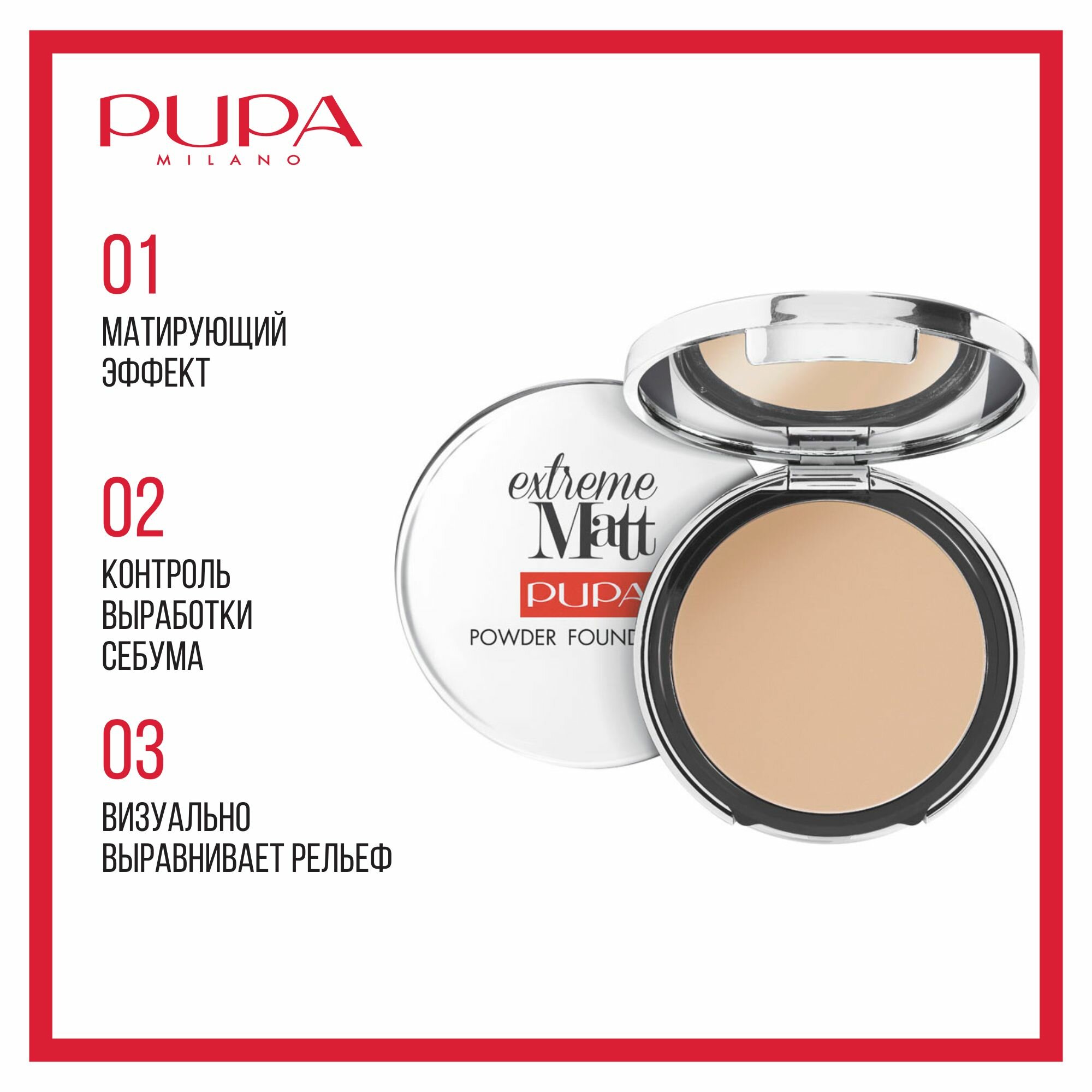 Pupa Компактная тональная основа EXTREME MATT №01, слоновая кость