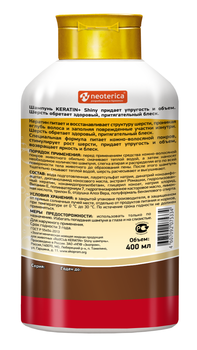 Rolf Club Keratin+ Shiny Шампунь питательный для короткошерстных пород собак и кошек, 400мл. 4607092075334
