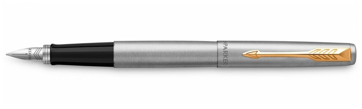 Ручка перьевая Parker "Jotter Stainless Steel GT", корпус серебристый, позолоченные детали, синяя (2030948)