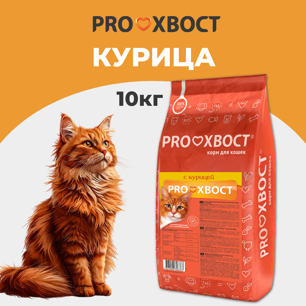 Сухой корм для кошек ProХвост, курица, 10кг