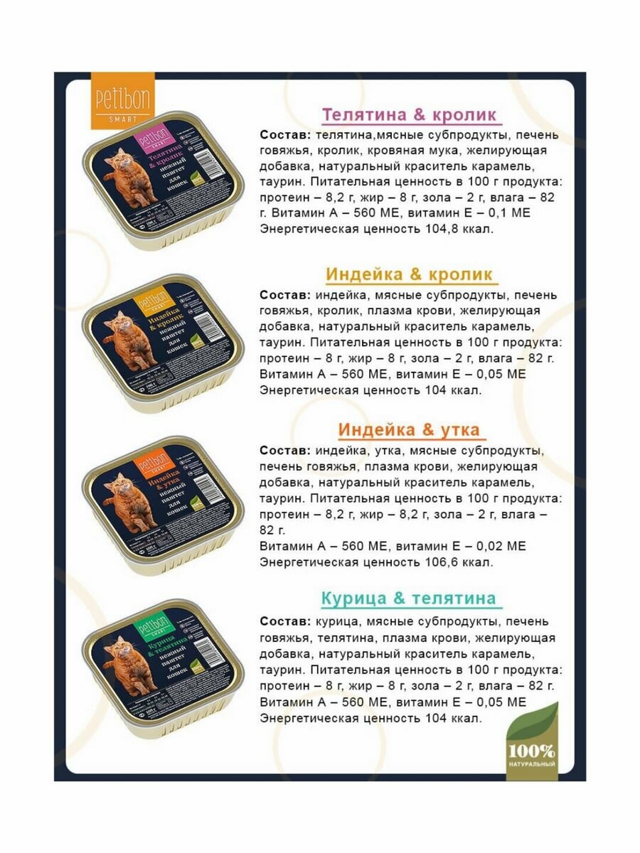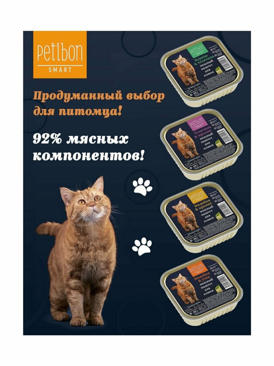 Petibon Smart влажный корм для взрослых кошек всех пород, паштет с телятиной и кроликом (24шт в уп) 100 гр