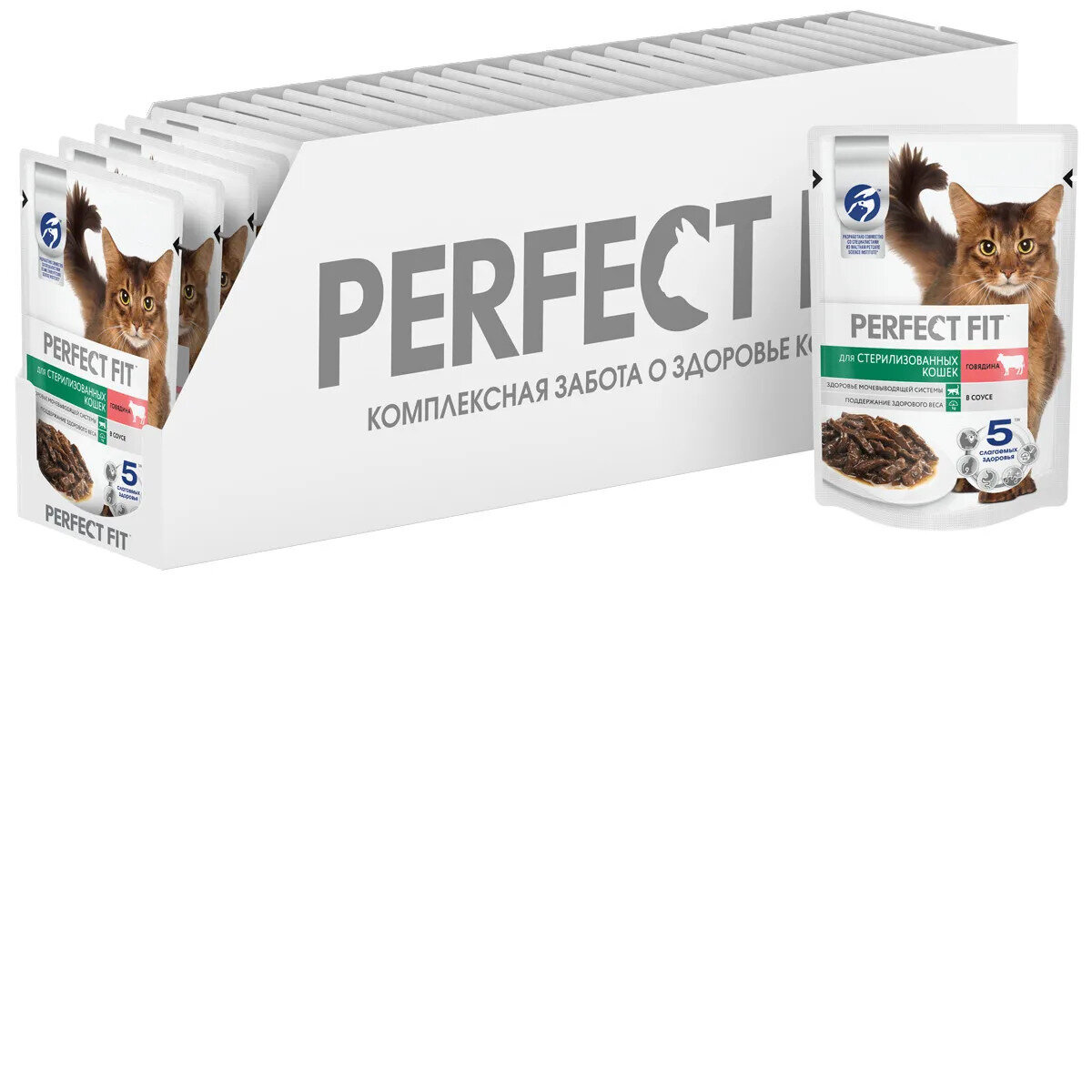 Корм для кошек PERFECT FIT Sterile для стерилизованных, говядина в соусе пауч 75г (упаковка - 28 шт)