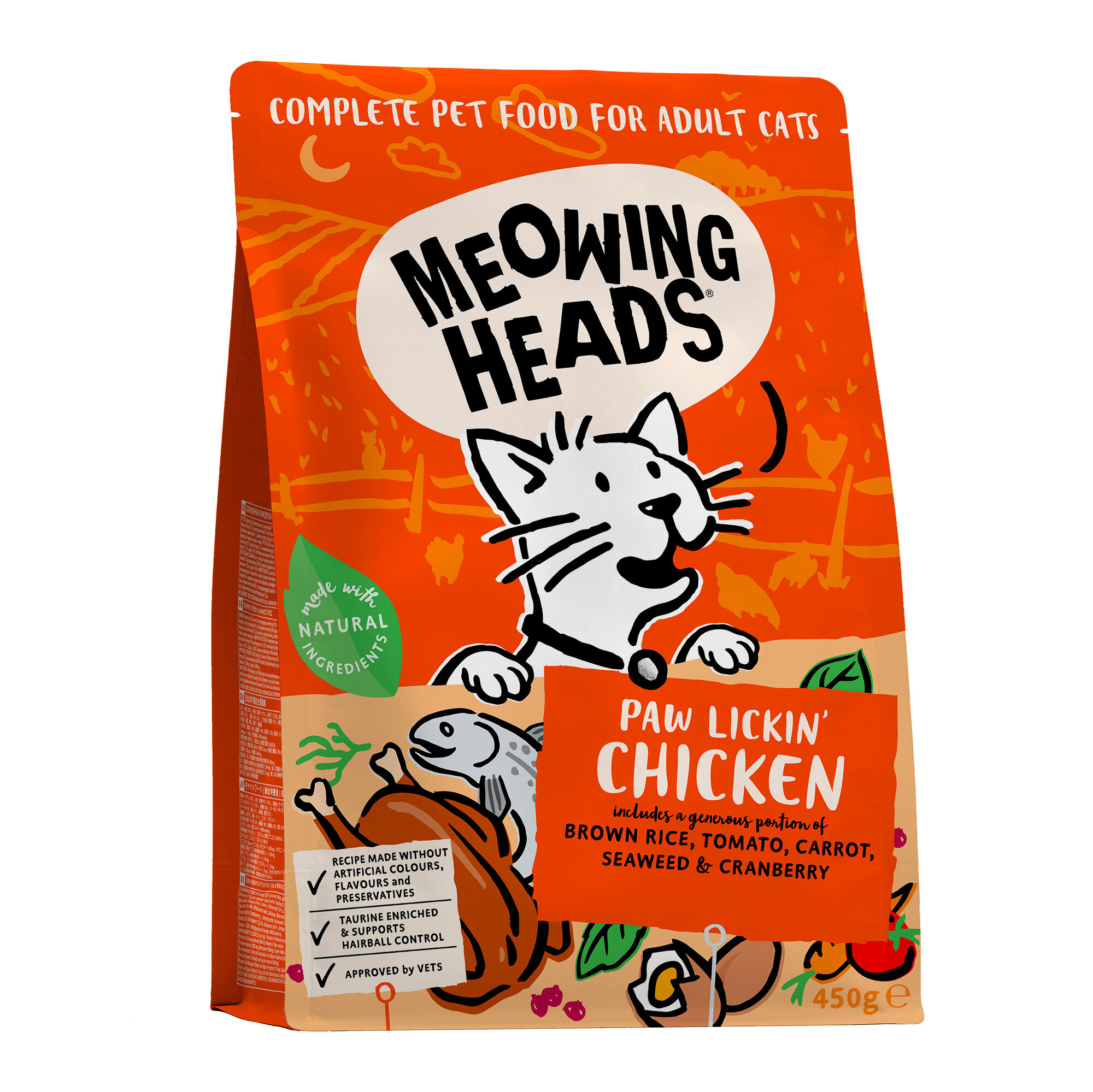 Meowing Heads Для Взрослых кошек с Курицей и рисом Куриное наслаждение (Paw Lickin’ Chicken 450g) MCK450 | Paw Lickin’ Chicken 450g, 0,45 кг