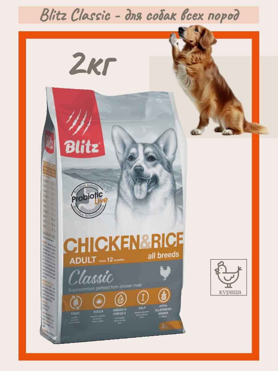 Сухой корм для собак Blitz Classic, курица с рисом 1 уп. х 1 шт. х 2 кг