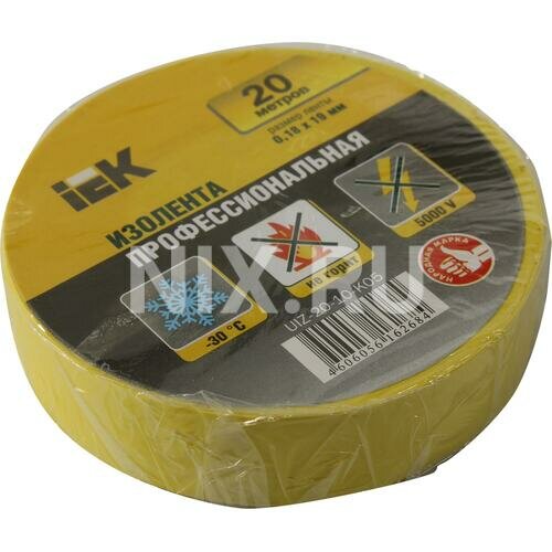 Изолента ПВХ желтая 19х20м UIZ-20-10-K05 IEK